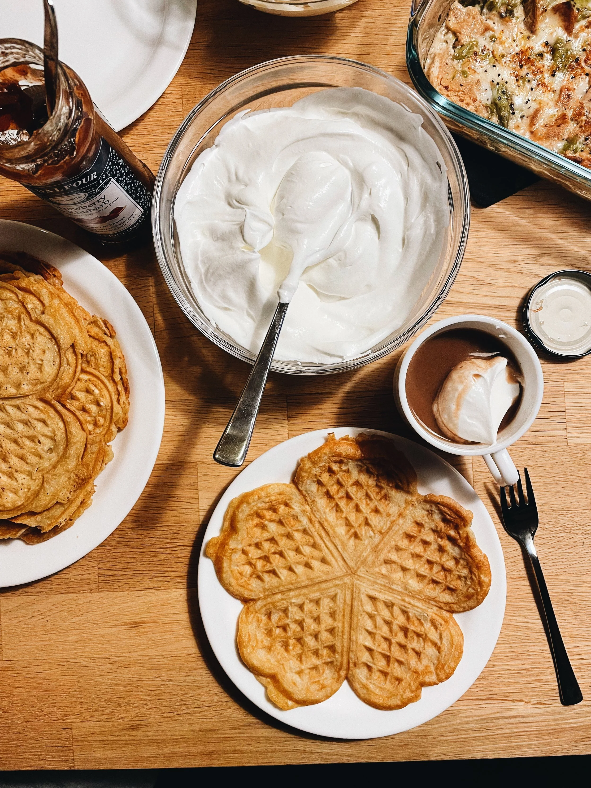 Vi åt massor med god mat, bakade våfflor och gjorde varmt choklad. Drömmen!