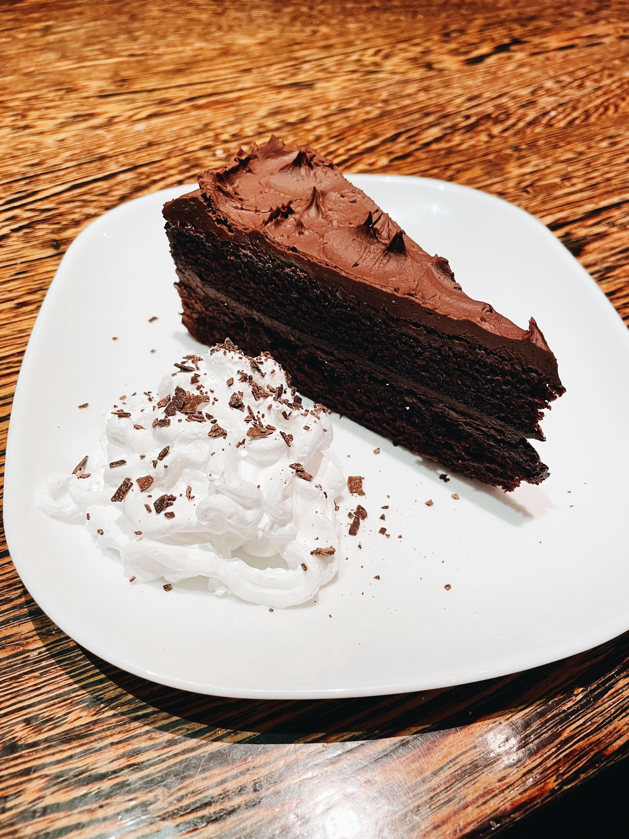 Chokladtårtan kommer med vegansk vispad grädde. Bästa som finns.