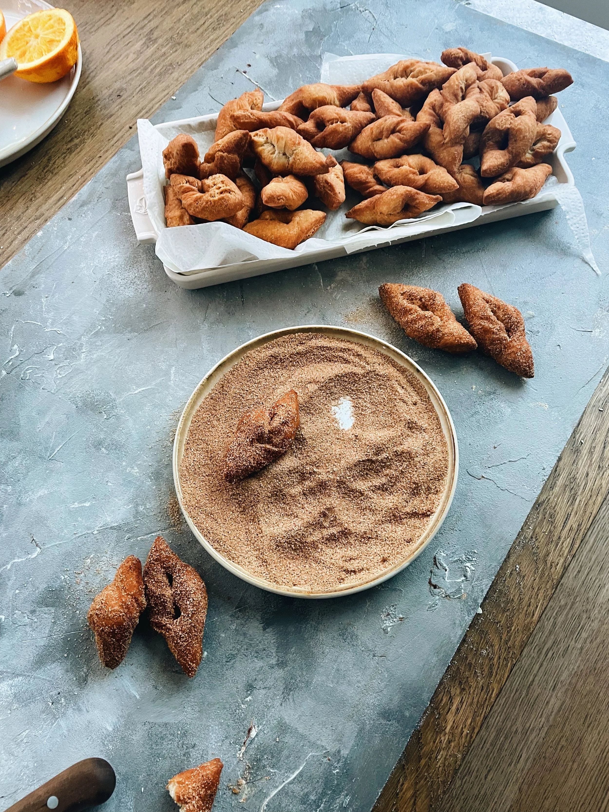 Det var hemskt kul att jobba tillsammans med lilla syster. Vi är så vana att arbeta från olika håll eftersom jag bor här i Sverige, men när vi jobbar tillsammans flyter allt på så bra. Här har vi bild på klassiska isländska bakelser “kleinur” som vi gjorde med julkryddor och rullade i kanelsocker Herregud vad gott!