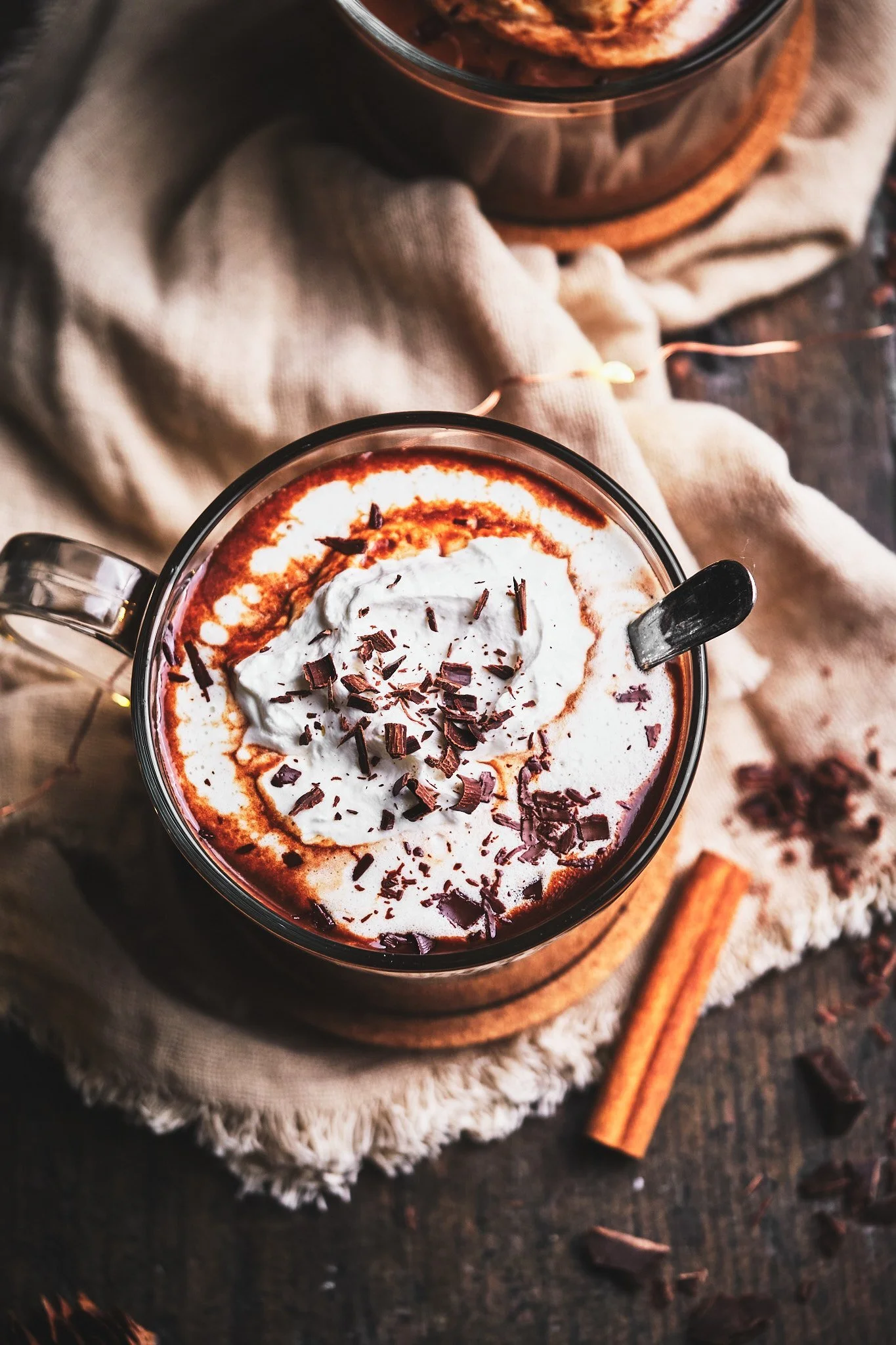 Smarrig vegansk varm choklad med vispad grädde. Så himla mysigt!