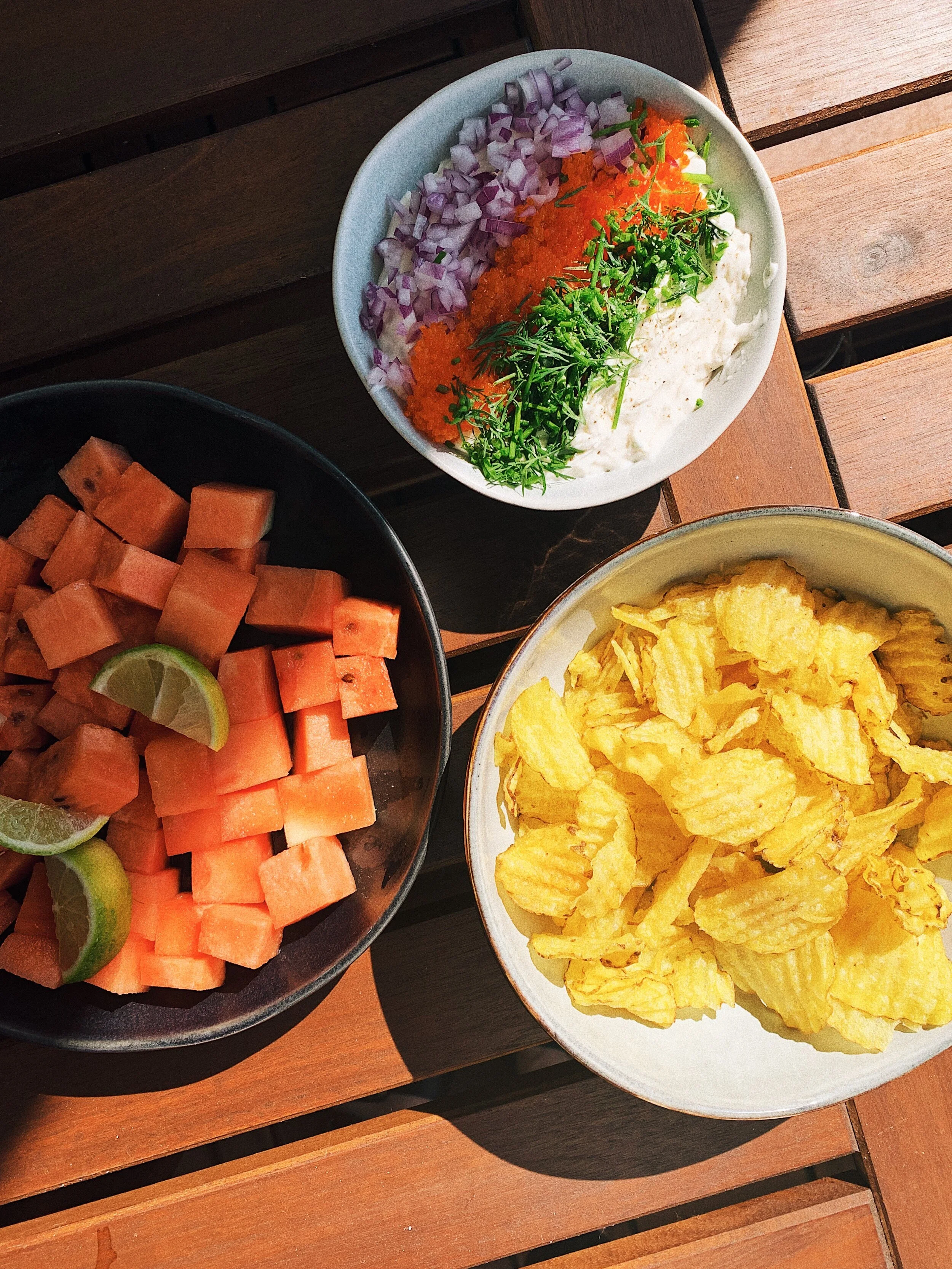Jag gjorde min favoritdip och åt med mina favoritchips.. och drack min favoritöl till. Ja och vattenmelon, den får jag inte glömma. Inte så jättedåligt om ni frågar mig.