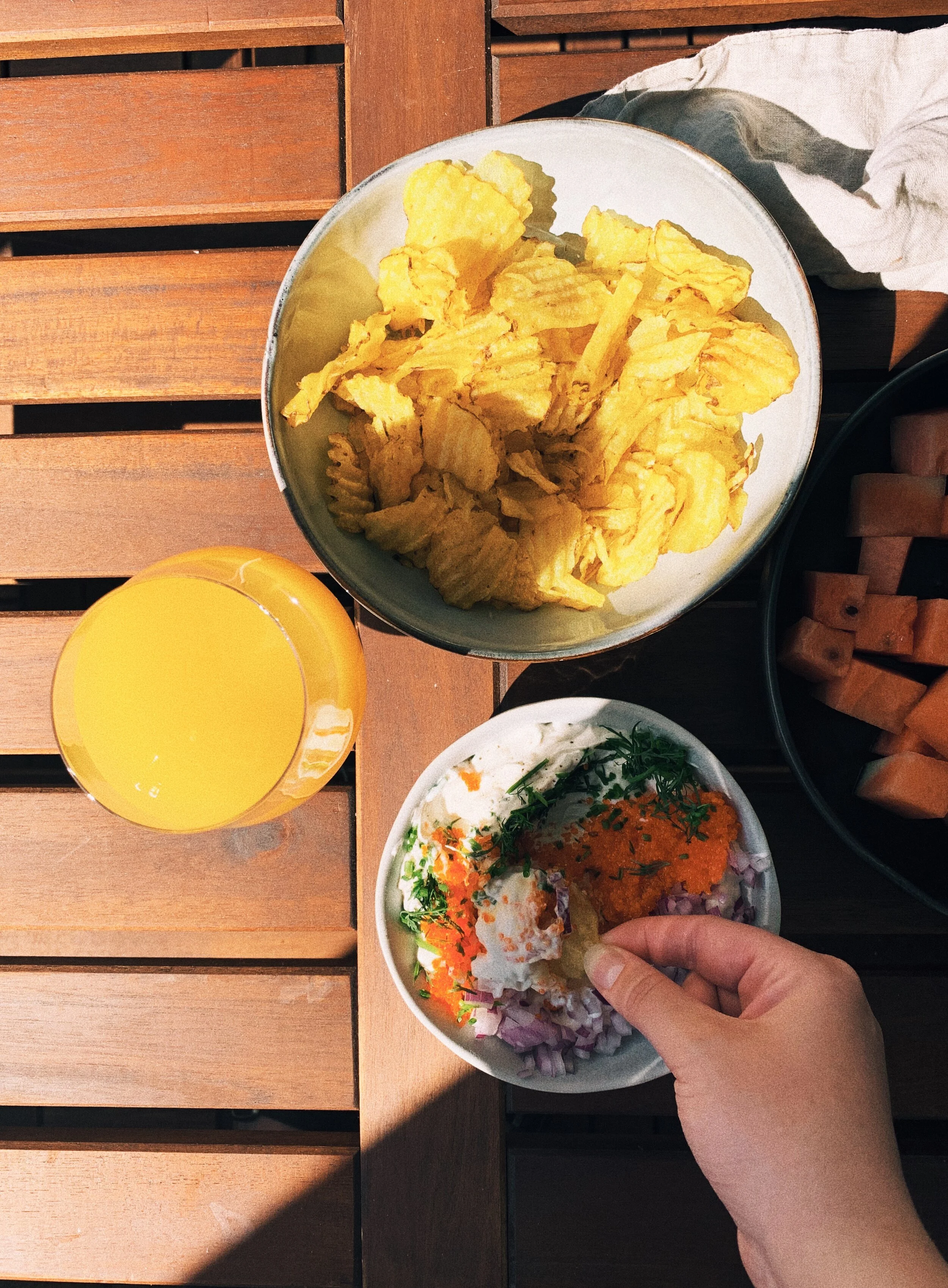 Skulle kunna äta med sked men bestämde mig att bete mig som än riktig vuxen människa och åt de med rifflade salta Västkust chips!