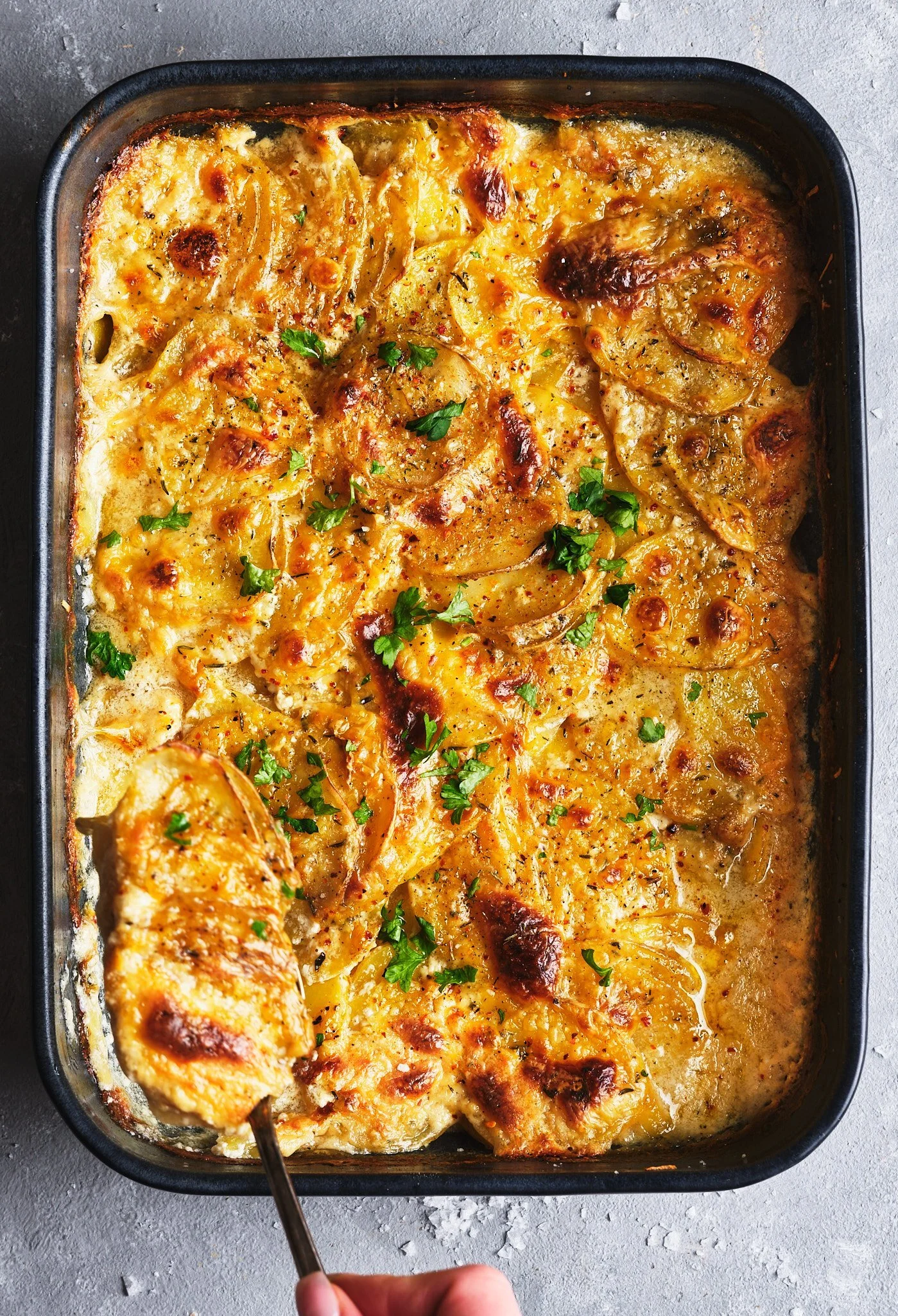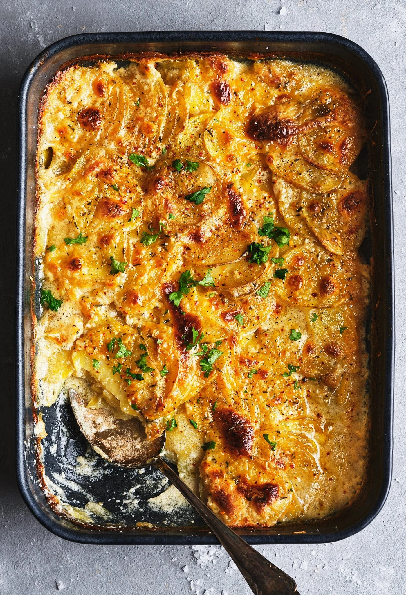 Potatisgratäng är en av de där tillbehören som passar till nästan allt. Det kan vara både vardagligt och festligt och jag skulle absolut äta det både till tisdagsmiddagen och på julafton.