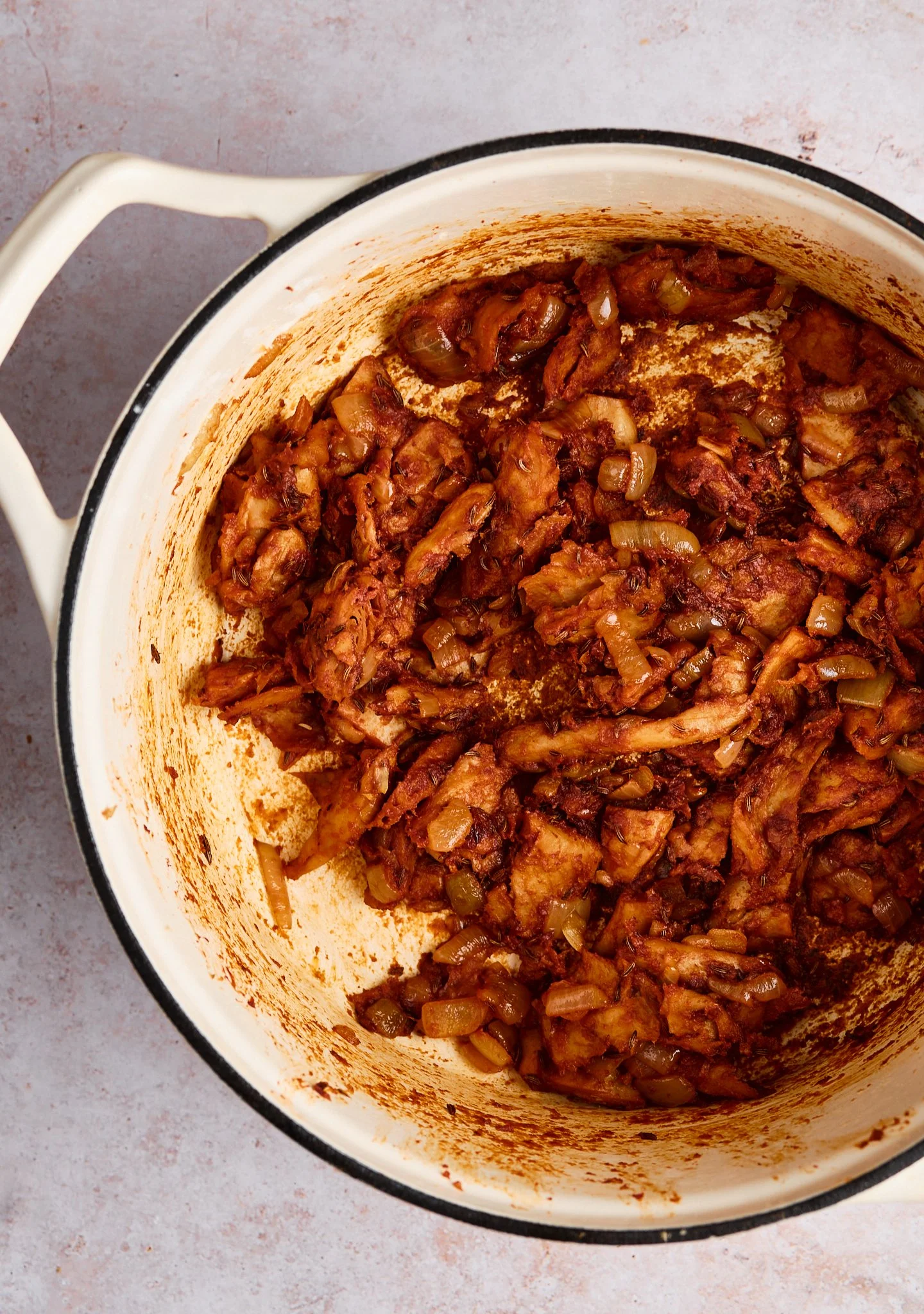 - Tillsätt tomatpuré, paprikapulver och kummin och stek i sirka 2 minuter medans ni rör om.