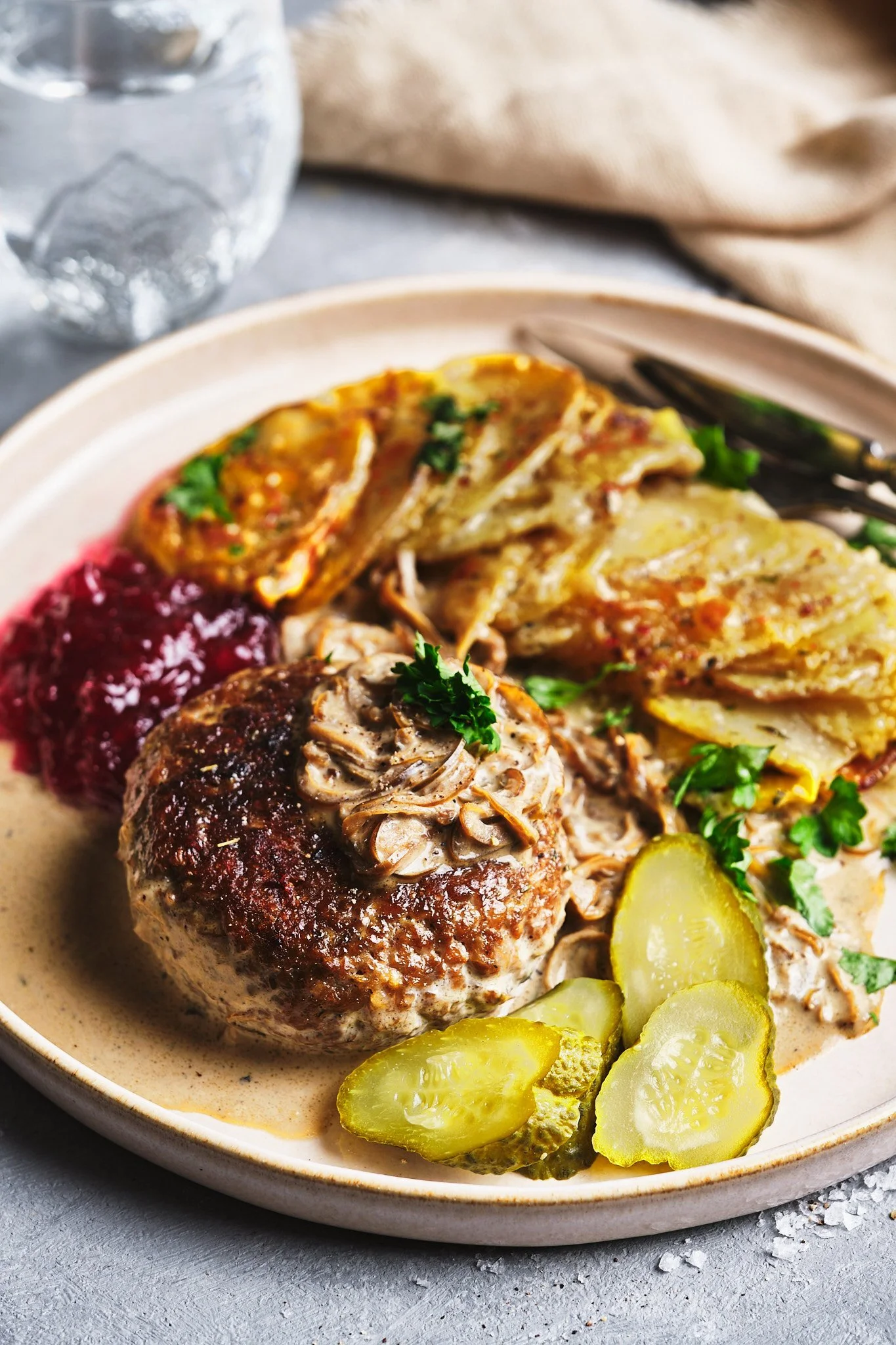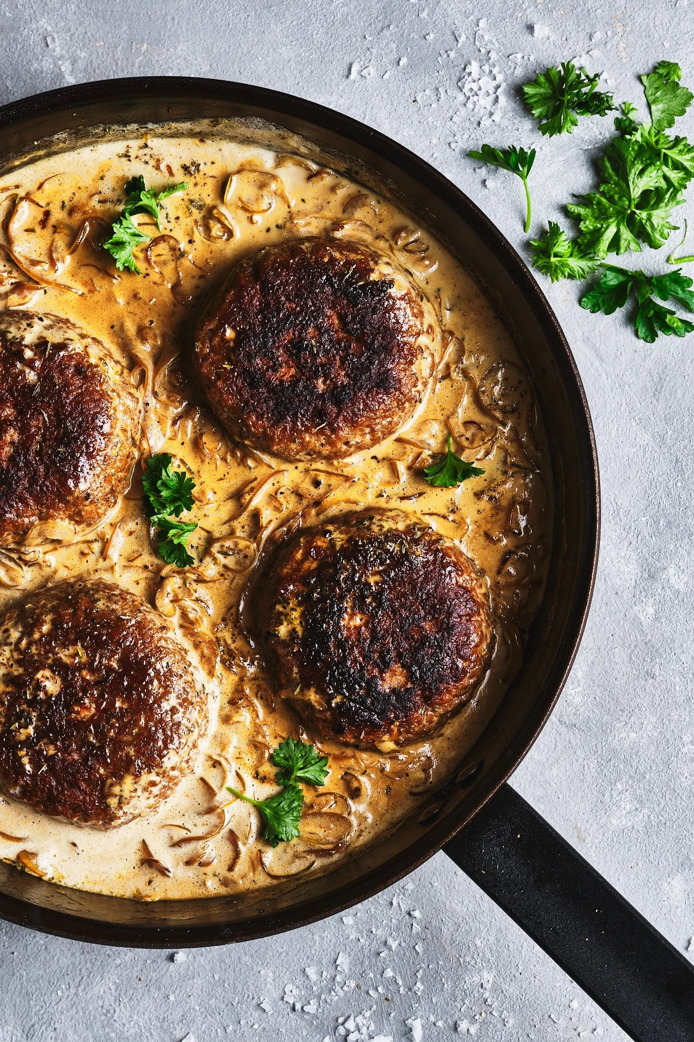 Idag delar jag med er recept på smarrig vegansk pannbiff med krämig löksås, serverad med potatisgratäng, saltgurka och lingonsylt. En enkel och god maträtt som passar både till vardags och vid finare tillfällen. En RIKTIG vardagslyx!