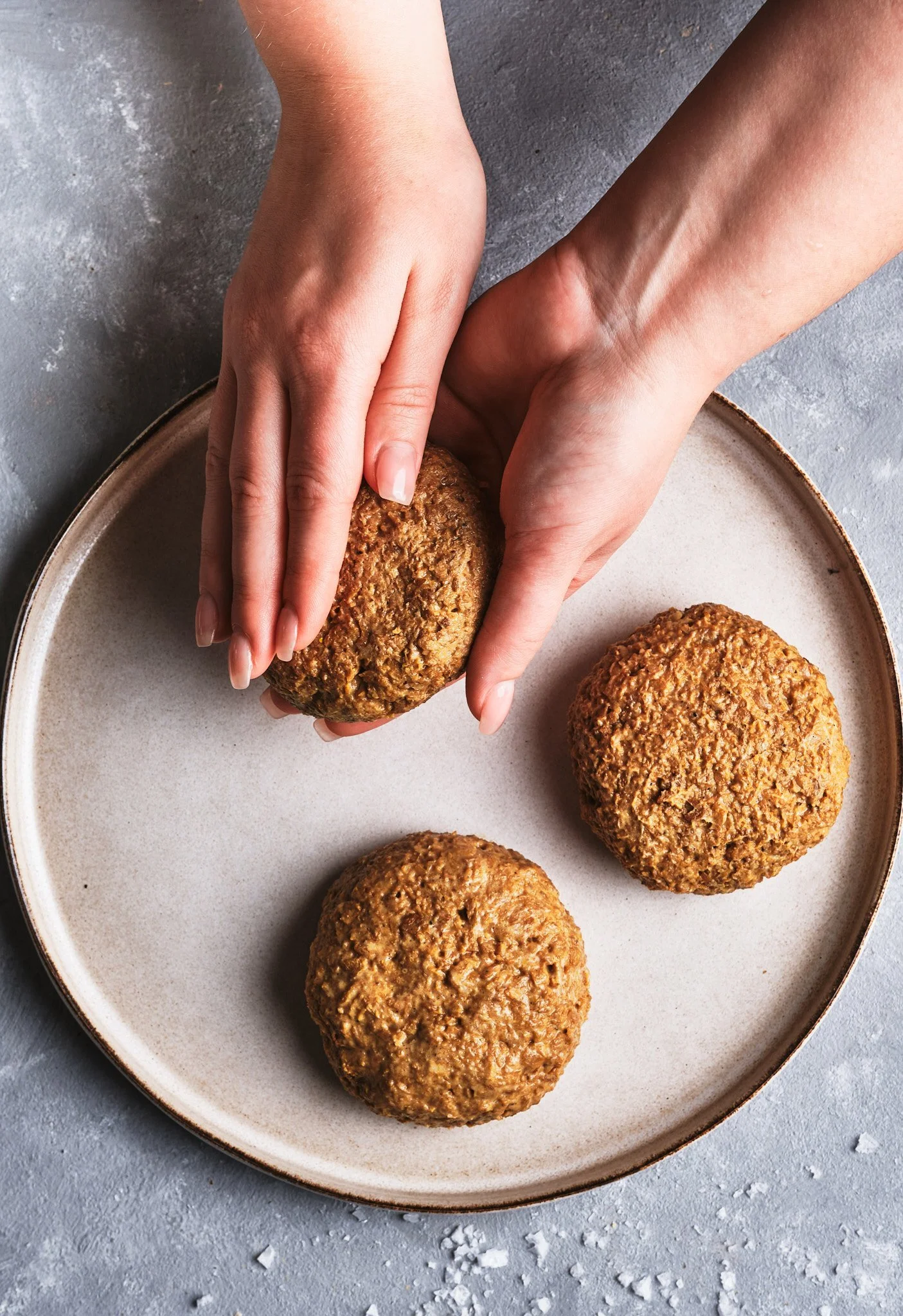 Kolla hur fina biffarna ser ut. Tack vare formbar färs behöver vi veganer inte oroa oss med olika brödsmulor eller andra bindemedel. Det är helt enkelt bara att tina färsen, krydda, forma och steka. Hur enkelt som helst!